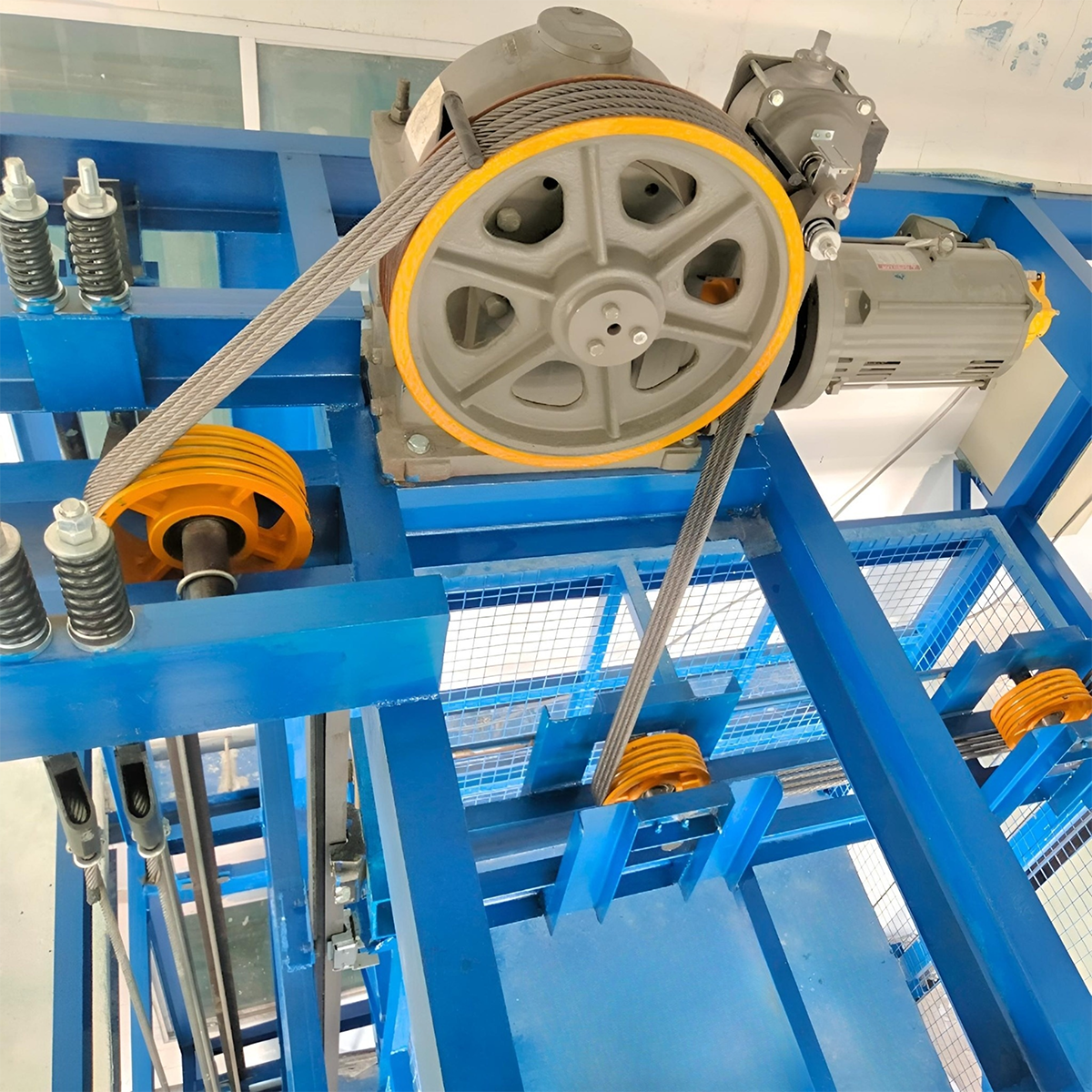 Thang nâng dạng động cơ tang quấn: Dùng trong kho hàng, siêu thị, khu công nghiệp với thiết kế nhỏ gọn, linh hoạt với tải nâng từ 500 kg đến 2 tấn, tốc độ từ 15 ~18m/ phút.